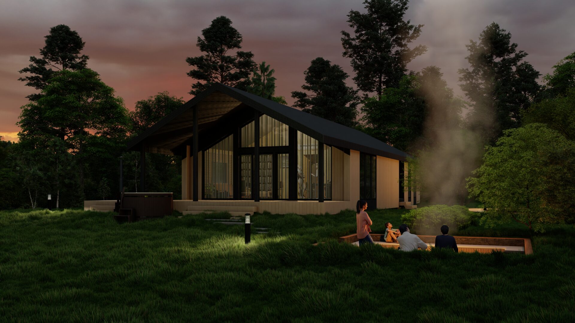 Банная Цитадель: Уединенный терем с террасой-променадом над рукотворным прудом, где пар сливается с водной гладью.