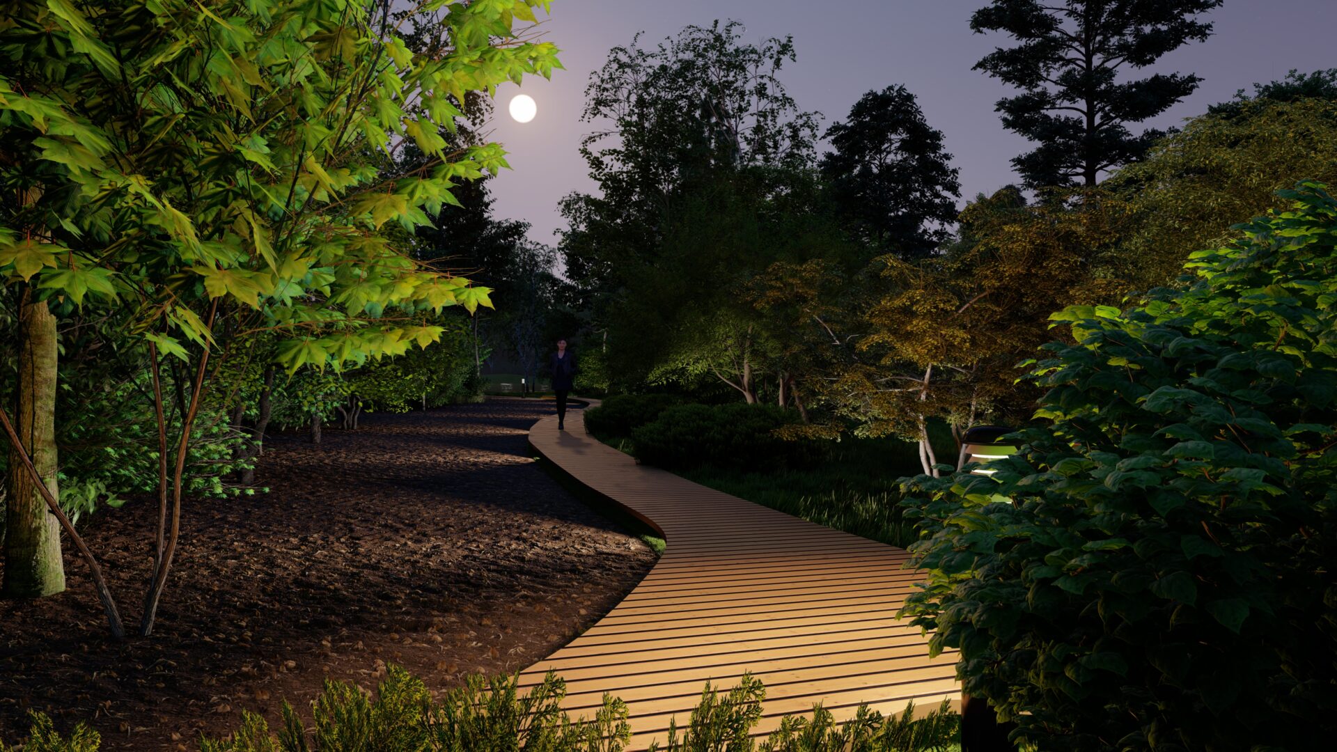Дорожная сеть-паутинка: Тропы из щепы и гравия, вьющиеся между зонами как нити дружбы.