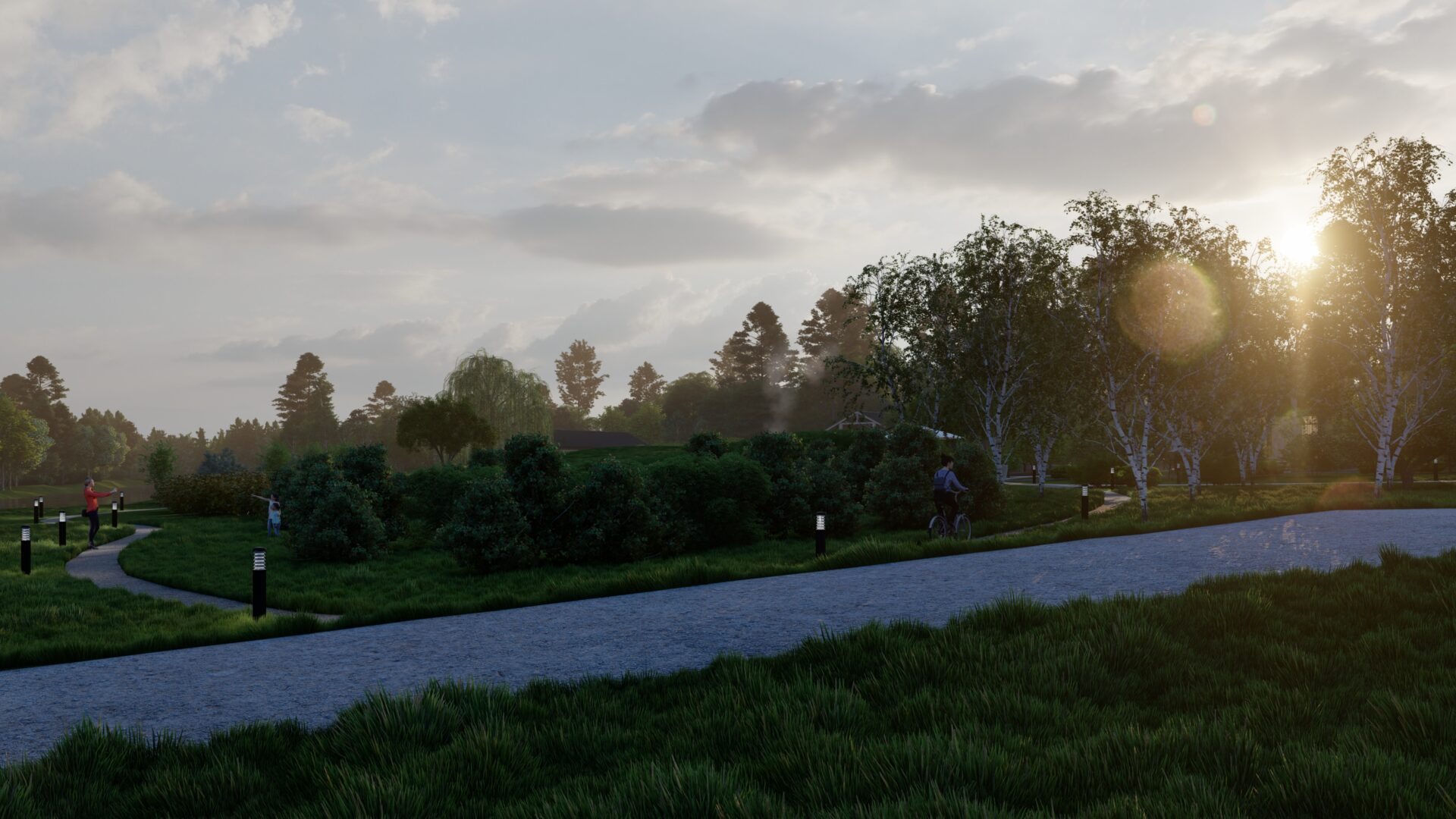 Озеленение-наследие: Аборигенные травы, ивовые кулисы у воды, ягодные опушки – чтобы через годы лес признал это место своим.