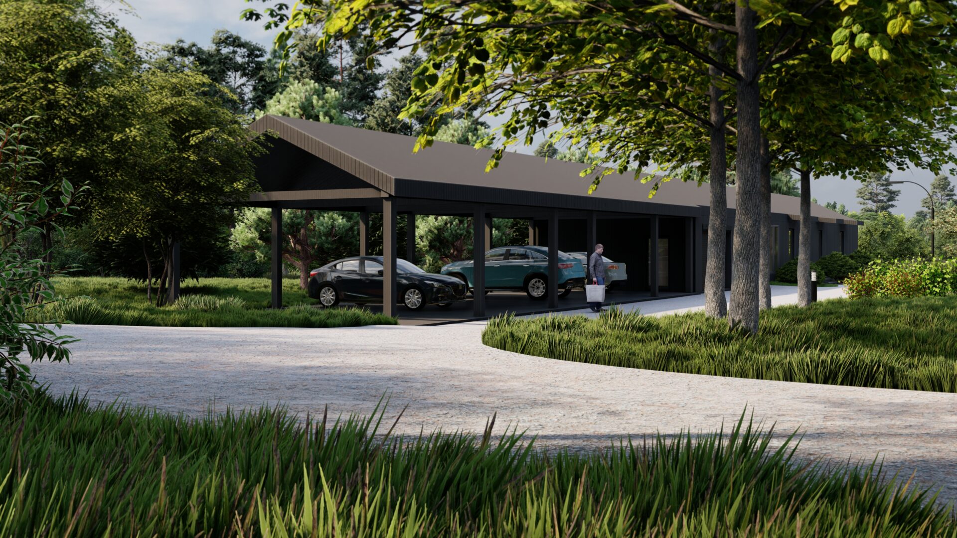 Дом-Невидимка: Для обслуживающего персонала, деликатно вписанный в ландшафте.