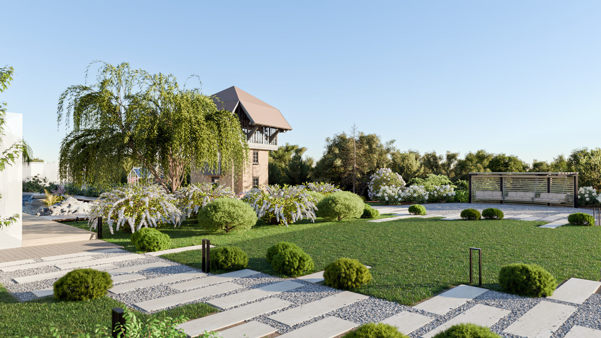 Вызов: Требовалось спроектировать не просто участок с домами и садом, а