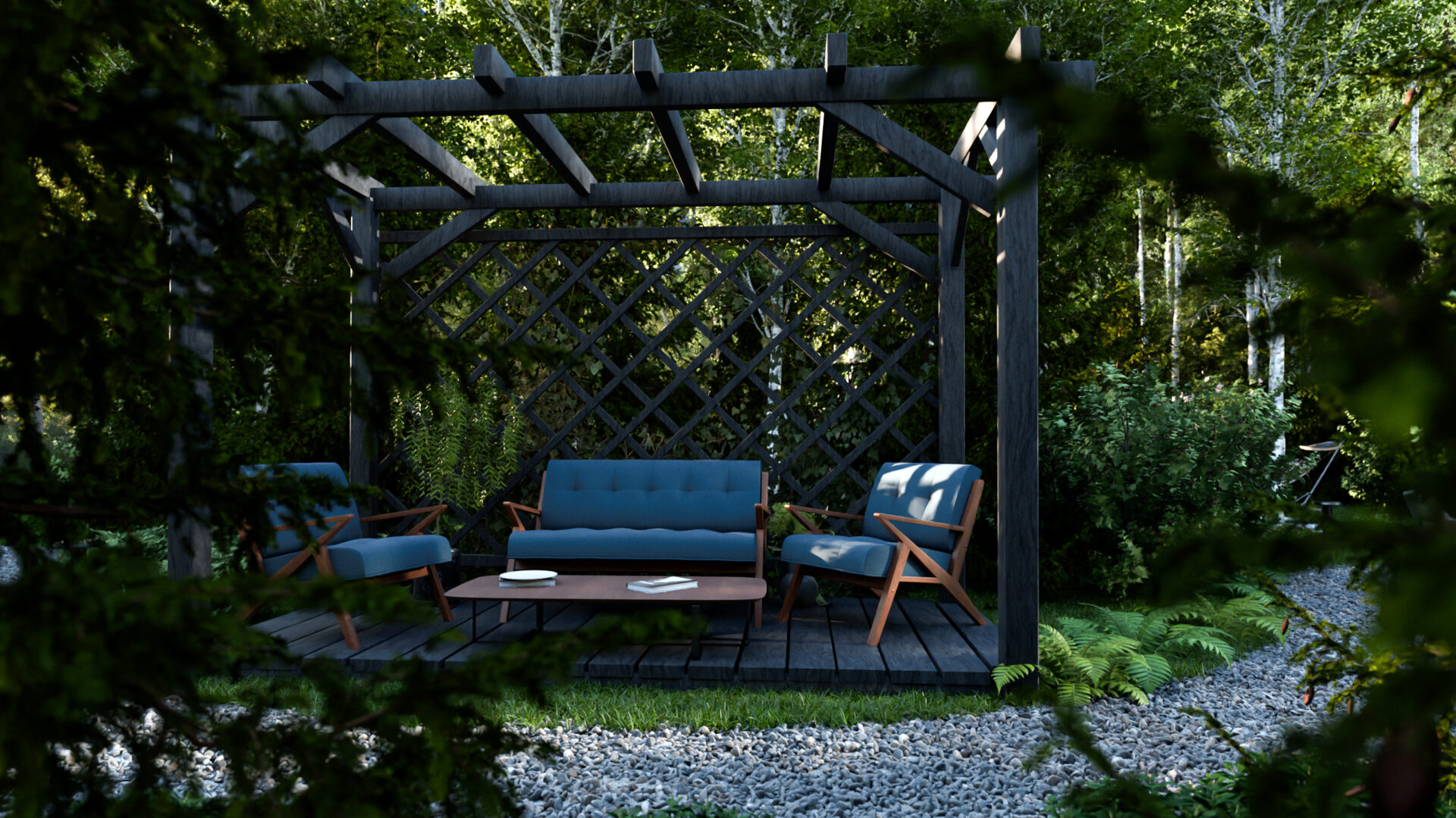 * Левее – пергола с качелями, приглашающая помечтать.